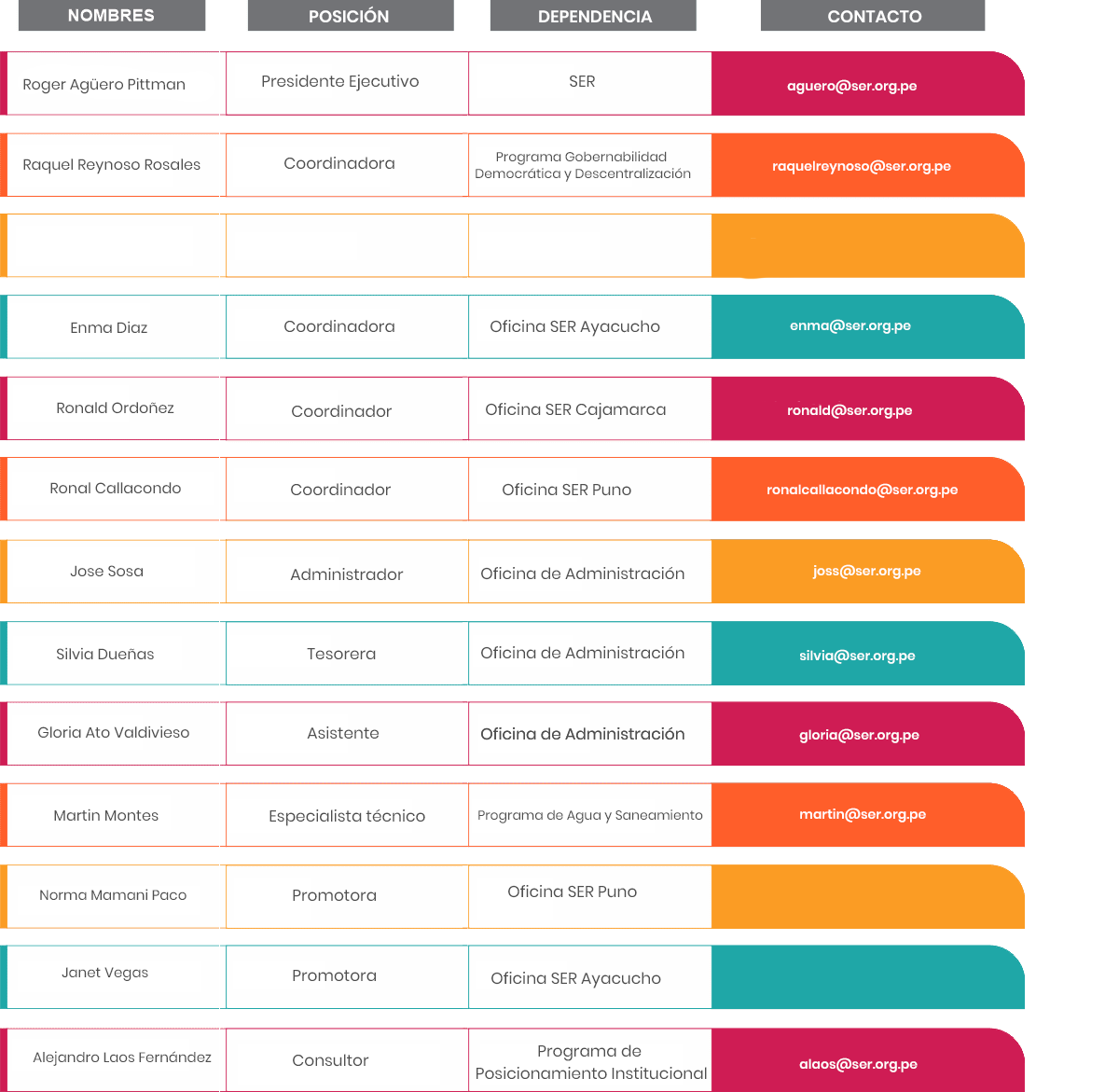 Con amplia experiencia en temas relacionados con el fortalecimiento de la institucionalidad democrática local y la descentralización. Integró el Consejo Directivo de la Asociación SER en distintos periodos